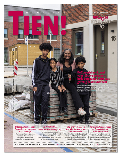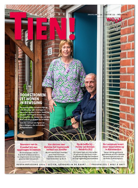 In het magazine 'Tien!' leest u van alles over wonen en de activiteiten van Woonkracht10. De 'Tien!' verschijnt twee keer per jaar en wordt verstuurd naar alle huurders, medewerkers en relaties van Woonkracht10.